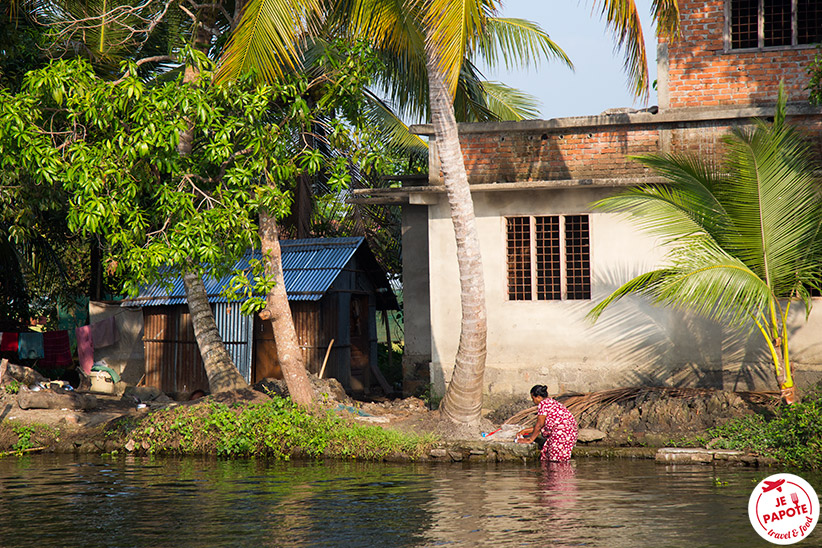 Sur les rives, j’ai aimé observer les maisons au bord de l’eau et entrevoir la vie des habitants ici. Les backwaters font partis intégrante de leur quotidien. On y lave le linge, on y pêche et on y joue aussi. Autant de scènes de vie qui m’ont laissé songeuse face à mon mode de vie occidental.