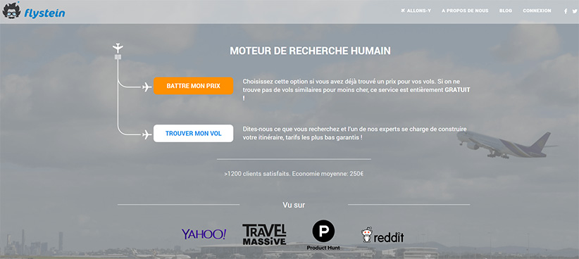 Flystein se décrit comme un moteur de recherche humain. Le fait qu’il y ait de l’humain derrière me semble prometteur. C’est une offre innovante, loin des comparateurs de prix traditionnel.
